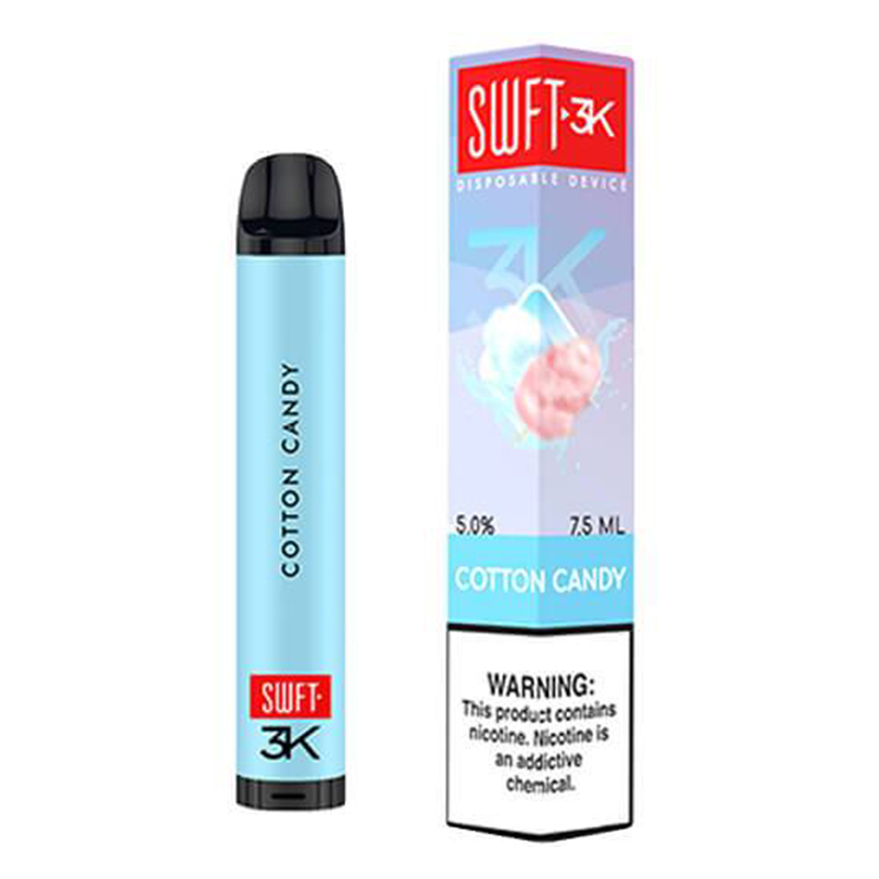 The SWFT 3K Disposable Vape is loaded with 7.5ml of salt nic juice and has a nic strength of 50mg. The 1200mAh battery provides plenty of power to extract every flavorful puff. An advanced airflow design and ergonomic mouthpiece deliver great vapor production for a disposable. A one-time use device, the SWFT 3K is incredibly easy to use. It is a draw activated disposable with no fire button. No filling is required. When the juice and battery are drained, which can take a while with a manufacturer estimated 3000+ puffs, just responsibly dispose of your SWFT 3K.
